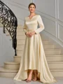 A-line V-neck Long Sleeves Asymmetrical Charmeuse Mother of the Bride Dress