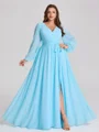 • A-line V-neck Long Sleeves Sash/Ribbon/Belt Floor-Length Chiffon Plus Size Bridesmaid Dress