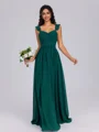A-line V-neck Pleated Floor-Length Chiffon Bridesmaid Dress