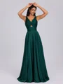 • A-line Chiffon V-neck Pleated Floor-Length Dress