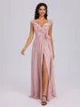 • A-line Chiffon V-neck Pleated Floor-Length Dress