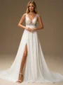 • A-line V-neck Sequin Court Train 30D Chiffon Wedding Dress