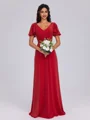 • A-line V-neck Short Sleeves Pleated Floor-Length Bridesmaid Dress