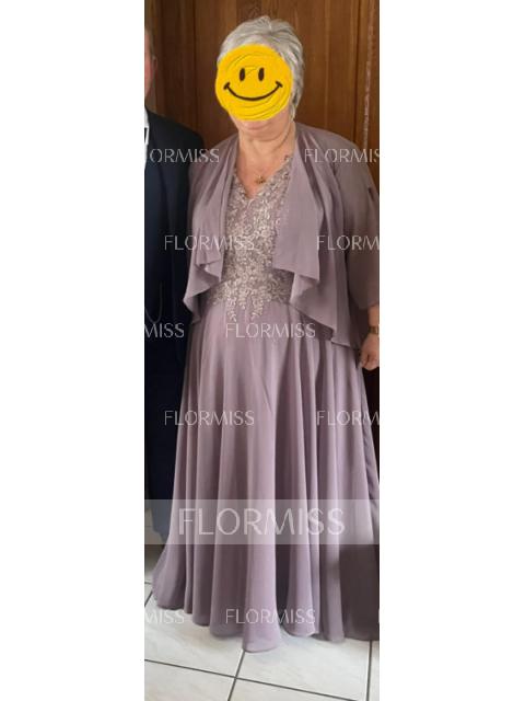 This A-line mother of the bride dress features a V-neckline, short sleeves, and stylish ruffles cascading down the ankle-length chiffon skirt. The design exudes grace and sophistication, making it a perfect choice for the mother of the bride.