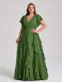 A-line V-neck Short Sleeves Ruffles Floor-Length Chiffon Corset Plus Size Bridesmaid Dress