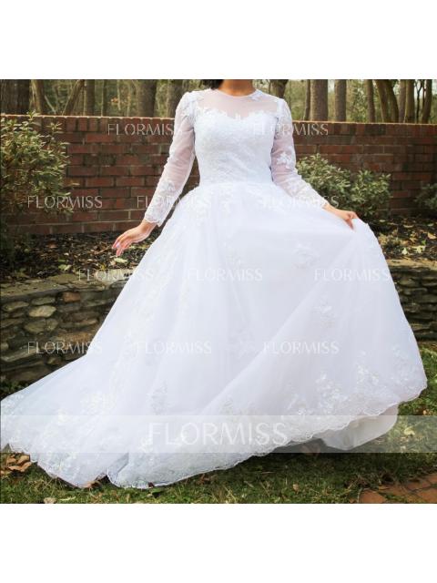 • Ball Gown Bateau Court Train Tulle Wedding Dresses With Appliques Lace