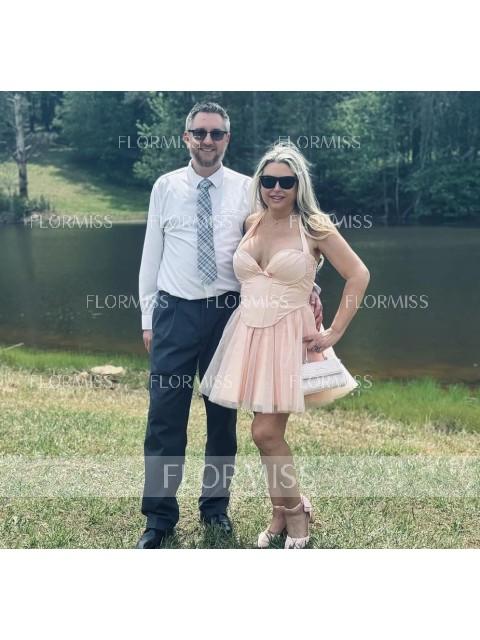 • Ball-Gown Halter Bow Short/Mini Corset Dress