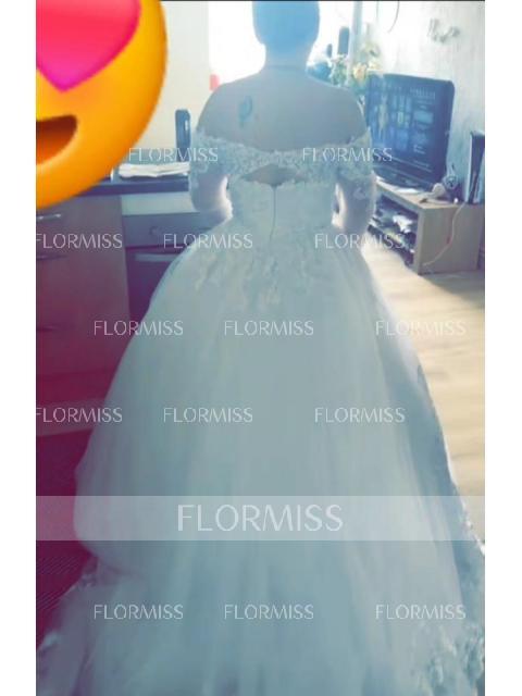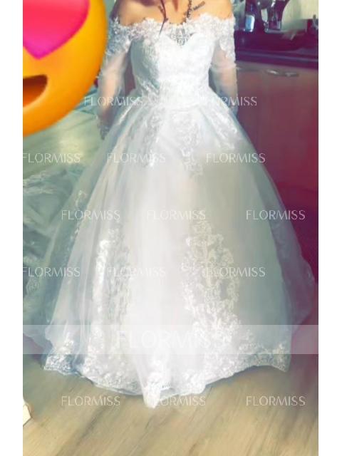 • Ball Gown Off-the-Shoulder Cathedral Train Tulle Wedding Dresses With Appliques Lace