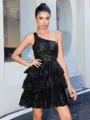• Ball-Gown One-Shoulder Appliques Lace Short/Mini Tulle Corset Dress