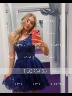 A sleeveless ball gown dress with a one-shoulder neckline, embellished with appliques lace. The dress is crafted from tulle fabric and features a corset-style bodice. It falls at a short/mini length.