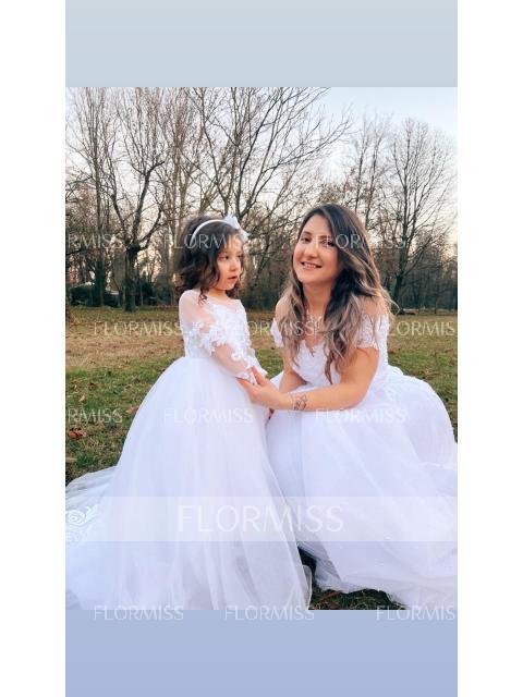 • Ball Gown Scoop Sweep Train Tulle Flower Girl Dresses