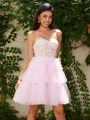 • Ball-Gown Tulle Sweetheart Appliques Lace Corset Short/Mini Dress