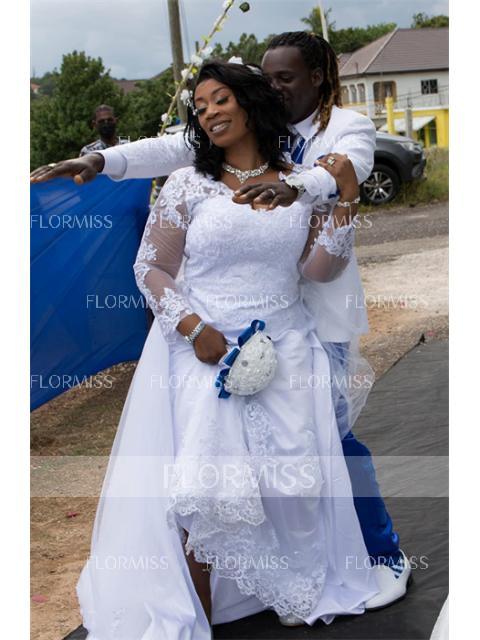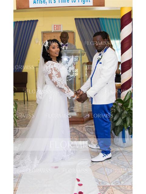 Note:The dress does not include any accessories in the picture, such as wraps/jackets, gloves, veil, handbag, etc. The tulle matches the model's skin tone and ships by default, if you want to change the tulle color or have questions about it. For more questions, you may choose to Chat now or Email us.