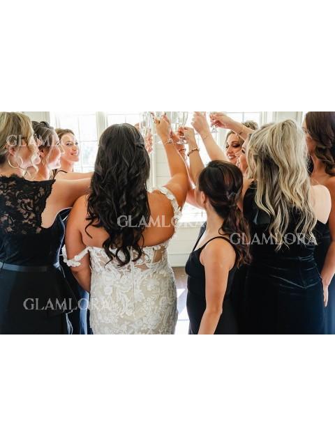 Classy A-line Off-the-Shoulder Long Sleeves Appliques Lace Chapel Train Tulle Corset Convertible Wedding Dress $161.00 $350.00 (1)