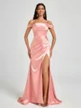 • Sheath Cold Shoulder Pleated Sweep Train Silk Like Satin Corset Bridesmaid Dress