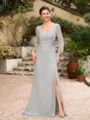 Sheath/Column 30D Chiffon Beading V-neck 3/4 Sleeves Floor-Length Mother of the Bride Dresses