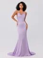 Sheath/Column Charmeuse Ruched Square Sleeveless Sweep/Brush Train Bridesmaid Dresses
