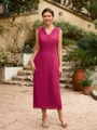 • Sheath/Column Chiffon Applique V-neck Sleeveless Tea-Length Mother of the Bride Dresses
