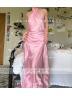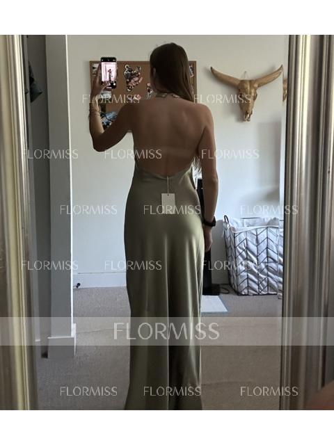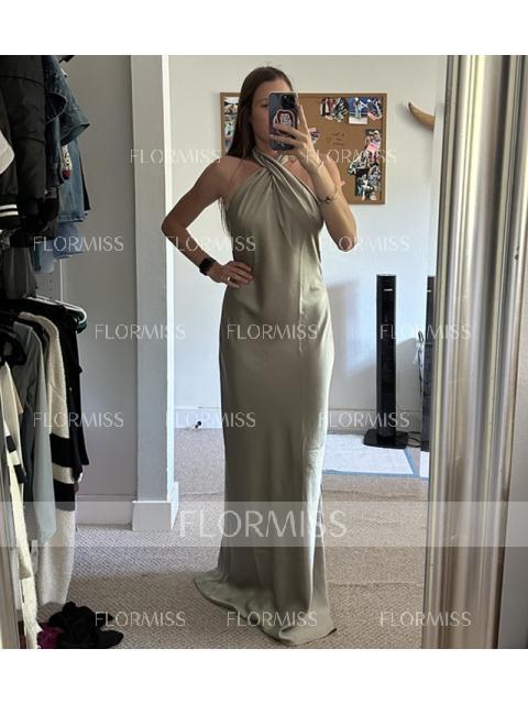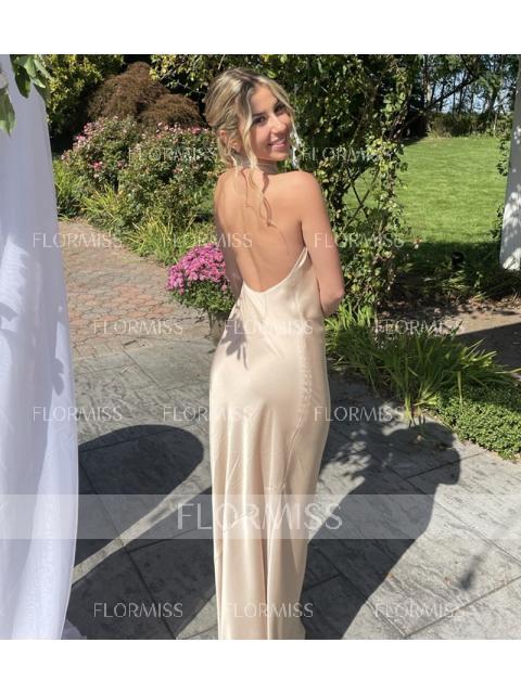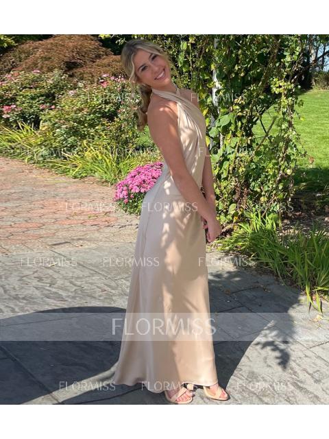 • Sheath/Column Halter Floor-Length Sleeveless Silk Like Satin Bridesmaid Dress
