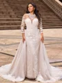 Sheath/Column Lace High Neck Long Sleeves Chapel Train Wedding Dresses