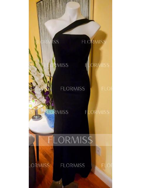 • Sheath/Column One-Shoulder Floor-Length Sleeveless Stretch Crepe Bridesmaid Dress