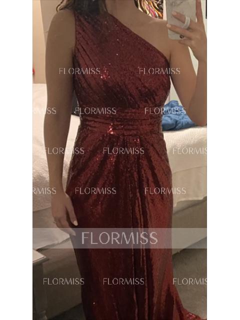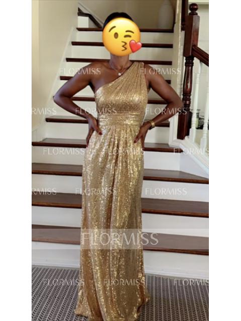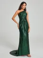• Sheath/Column One-Shoulder Sweep/Brush Train Sleeveless Sequins Bridesmaid Dress
