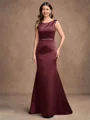 • Sheath/Column Satin Beading Scoop Sleeveless Sweep/Brush Train Mother of the Bride Dresses