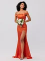 • Sheath/Column Off-the-Shoulder Sweep Train Polyester Bridesmaid Dresses With Leg Slit