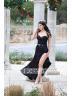 Sheath/Column Spaghetti Straps Sweep Train Silk Like Satin Prom Dresses With Leg Slit