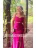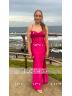 Sheath/Column Spaghetti Straps Sweep Train Silk Like Satin Prom Dresses With Leg Slit