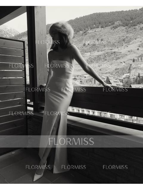 • Sheath/Column Strapless Floor-Length Stretch Crepe Prom Dresses With Leg Slit