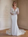• Sheath/Column Stretch Crepe Lace V-neck Long Sleeves Cathedral Train Wedding Dresses