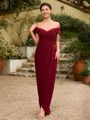 • Sheath/Column Stretch Crepe Ruched Off-the-Shoulder Sleeveless Floor-Length Mother of the Bride Dresses