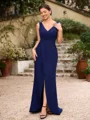 • Sheath/Column Stretch Crepe Ruched V-neck Sleeveless Floor-Length Mother of the Bride Dresses