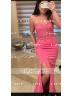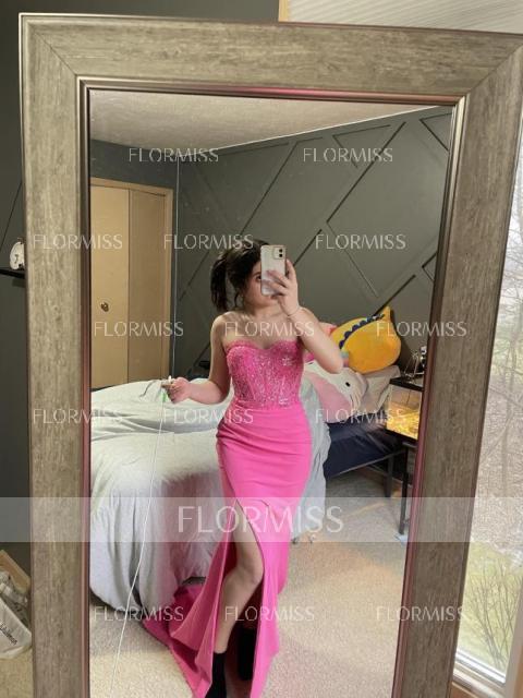 Sheath/Column Sweetheart Sweep Train Stretch Crepe Prom Dresses With Leg Slit