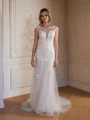 • Sheath/Column Tulle Lace Scoop Sleeveless Court Train Wedding Dresses
