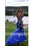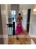 Sheath/Column V-neck Sweep Train Tulle Prom Dresses With Leg Slit