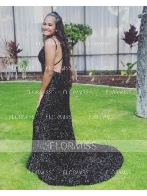 • Sheath/Column V-neck Sweep Train Velvet Sequins Prom Dresses