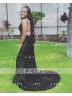 Sheath/Column V-neck Sweep Train Velvet Sequins Prom Dresses