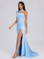 • Trumpet/Mermaid High Neck Floor-Length Sleeveless Stretch Crepe Bridesmaid Dress