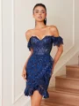 • Sheath Off-the-Shoulder Appliques Lace Short/Mini Tulle Corset Dress