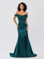 • Sheath Off-the-Shoulder Appliques Lace Sweep Train Silk Like Satin Corset Dress