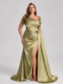 Sheath Off-the-Shoulder Pleated Court Train Silk Like Satin Corset Plus Size Bridesmaid Dress