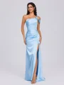 • Sheath One-Shoulder Pleated Floor-Length Silk Like Satin Bridesmaid Dress