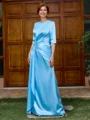 This floor-length mother of the bride dress boasts a sleek sheath silhouette, complemented by a chic scoop neckline and stylish half sleeves. Crafted from silk like satin, it offers both comfort and a flattering fit. The pleated detailing adds texture and visual interest to the ensemble, creating a sophisticated and refined look. Perfect for a mother who seeks a modern and elegant outfit for her daughter's special day.