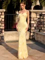 This elegant sheath prom dress features delicate spaghetti straps and a sleeveless design for a refined, feminine look. Lace appliques add romantic detail to the bodice, while the all-lace fabric flows into a floor-length silhouette, creating a graceful and timeless style perfect for prom or formal occasions.