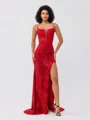 • Sheath Spaghetti Straps Appliques Lace Sweep Train Sequins Corset Dress