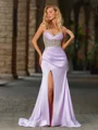 This elegant sheath dress features delicate spaghetti straps and a sleeveless design, crafted from luxurious silk-like satin that drapes beautifully. The bodice is adorned with exquisite beading, adding a touch of sparkle and sophistication. With a flattering corset structure and a graceful sweep train, this dress is perfect for formal occasions, blending glamour and style effortlessly.