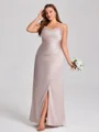 • Sheath Spaghetti Straps Pleated Floor-Length Silk Like Satin Plus Size Bridesmaid Dress