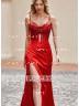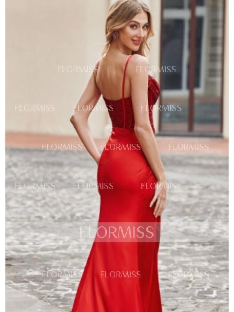 The Sheath Spaghetti Straps Sleeveless Pleated Sweep Train Silk Like Satin Corset Dress is a chic and elegant gown with a modern silhouette, featuring spaghetti straps, pleated detailing, and a flattering corset bodice in luxurious silk-like satin. Ideal for formal occasions.